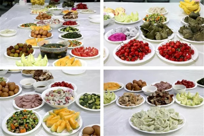 桌上摆满的是软糯清香的粽子、味道鲜美的饺子、新鲜诱人的水果,还有精心准备和制作的佳肴。大家品尝的是亲自动手的欣慰,更是幸福。